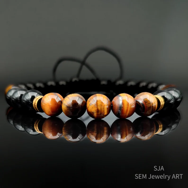 Material: Natural Tiger Eye Stone Beads + Adjustable Cord